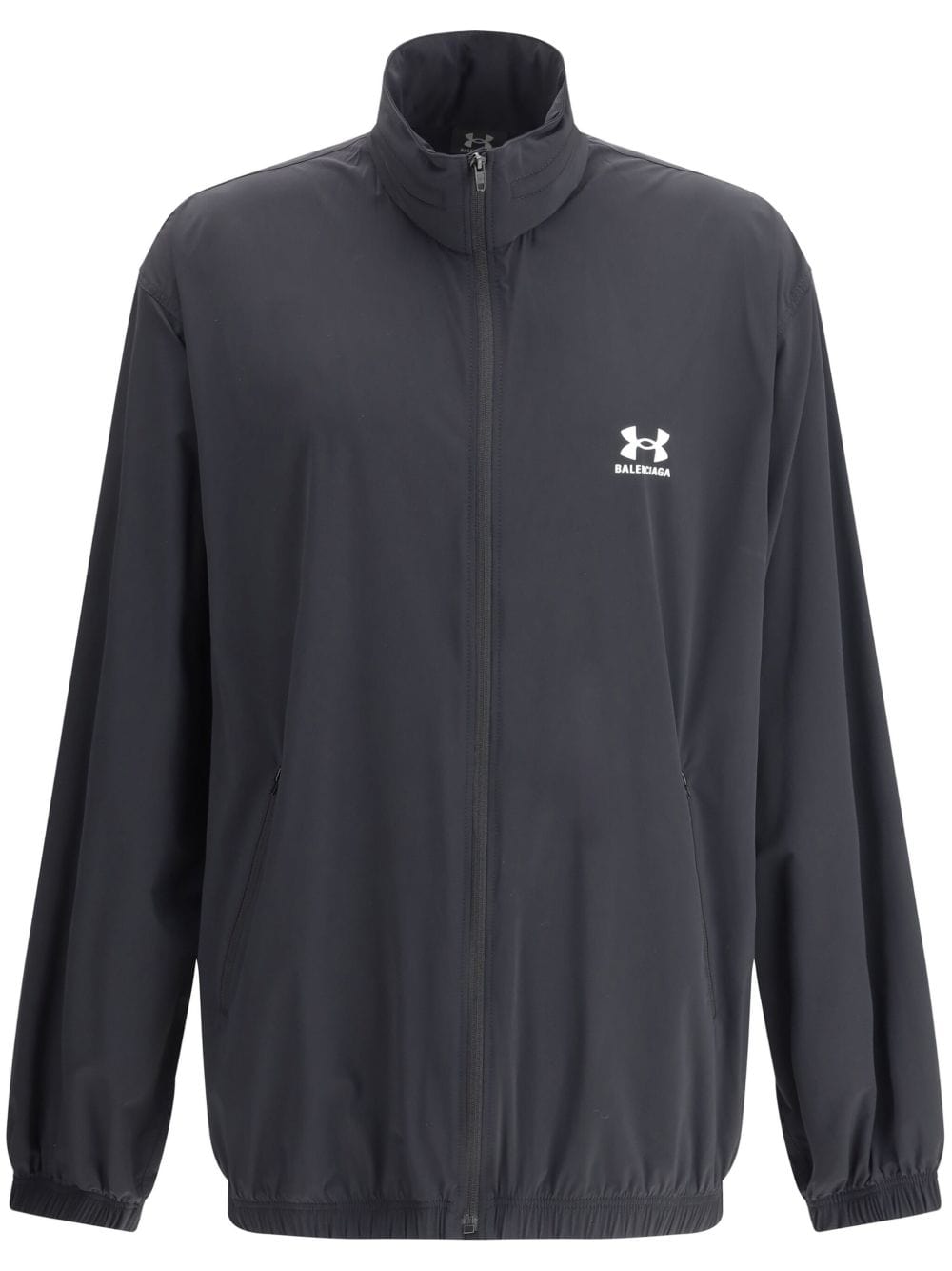 Black front zip fastening high neck logo print to the front elasticated cuffs elasticated hem impermeabile Balenciaga x Under Armour windbreaker.